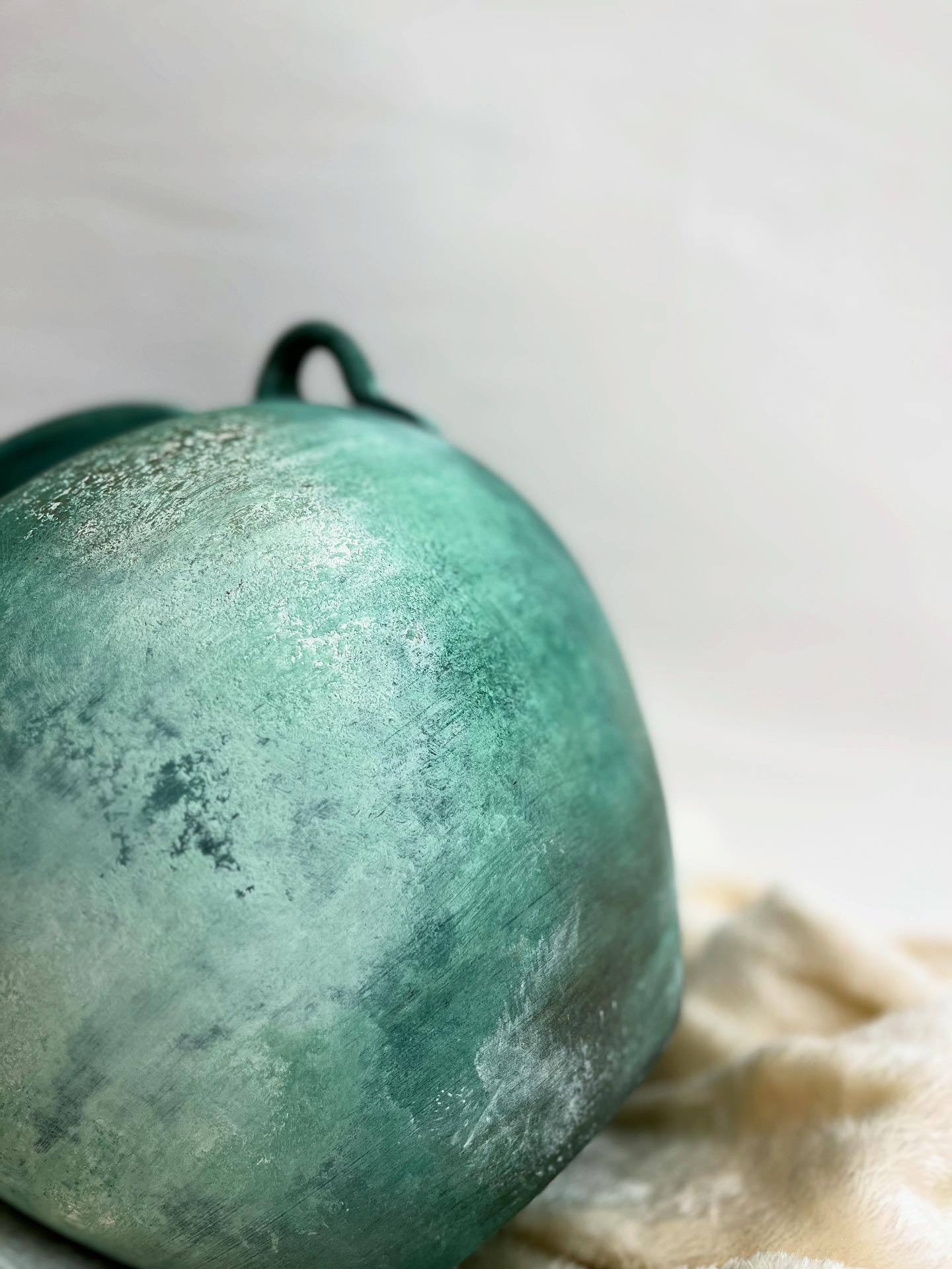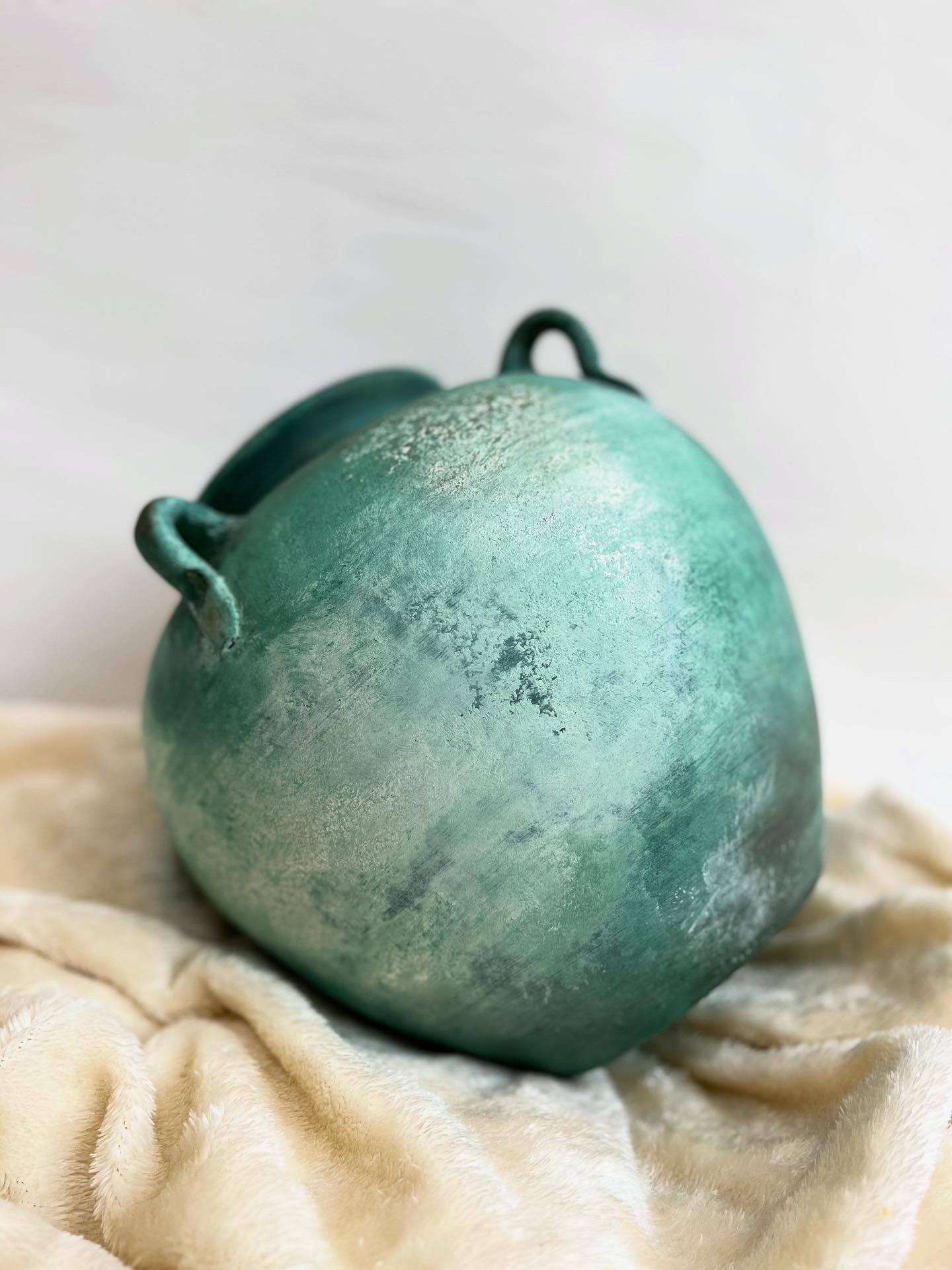 گلدان رومیزی با پتینه سفید و سبز قابل سفارش به رنگ دلخواه شما برای اطلاعات بیشتر به واتس اپ پیام بدهید
